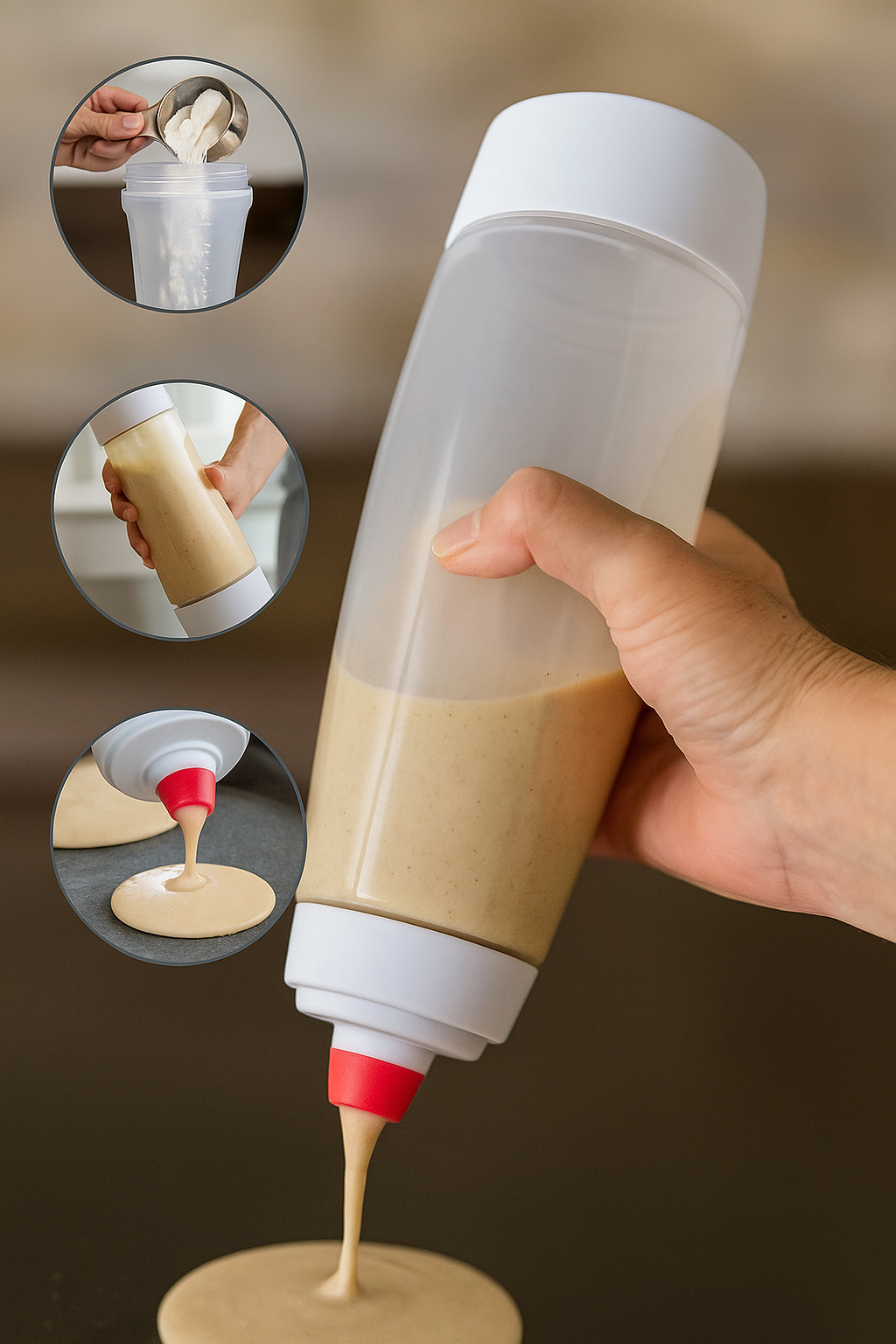 Préparez, mélangez et dosez vos pâtes en un seul geste: sans bol, sans grumeaux, sans gaspillage.