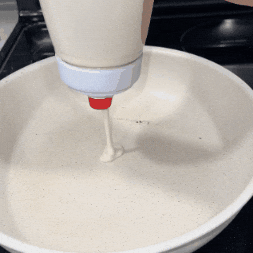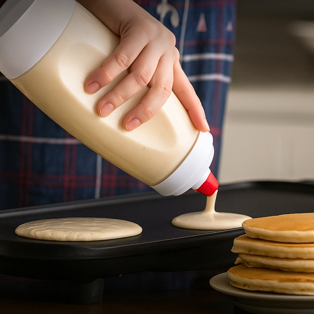 Appuyez sur la poignée de pression pour verser la quantité parfaite, que ce soit pour une crêpe, un muffin ou un cupcake.