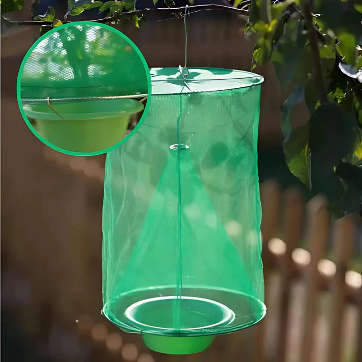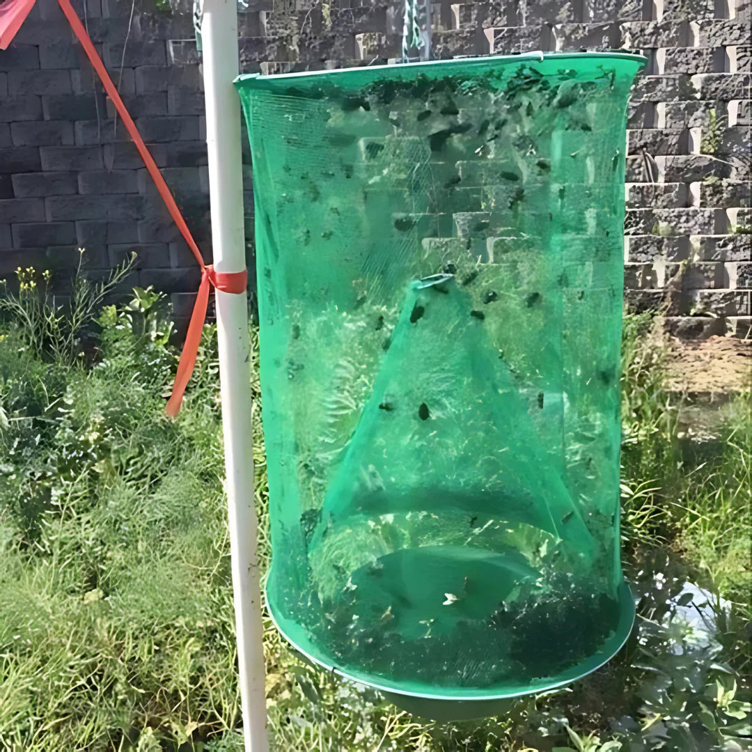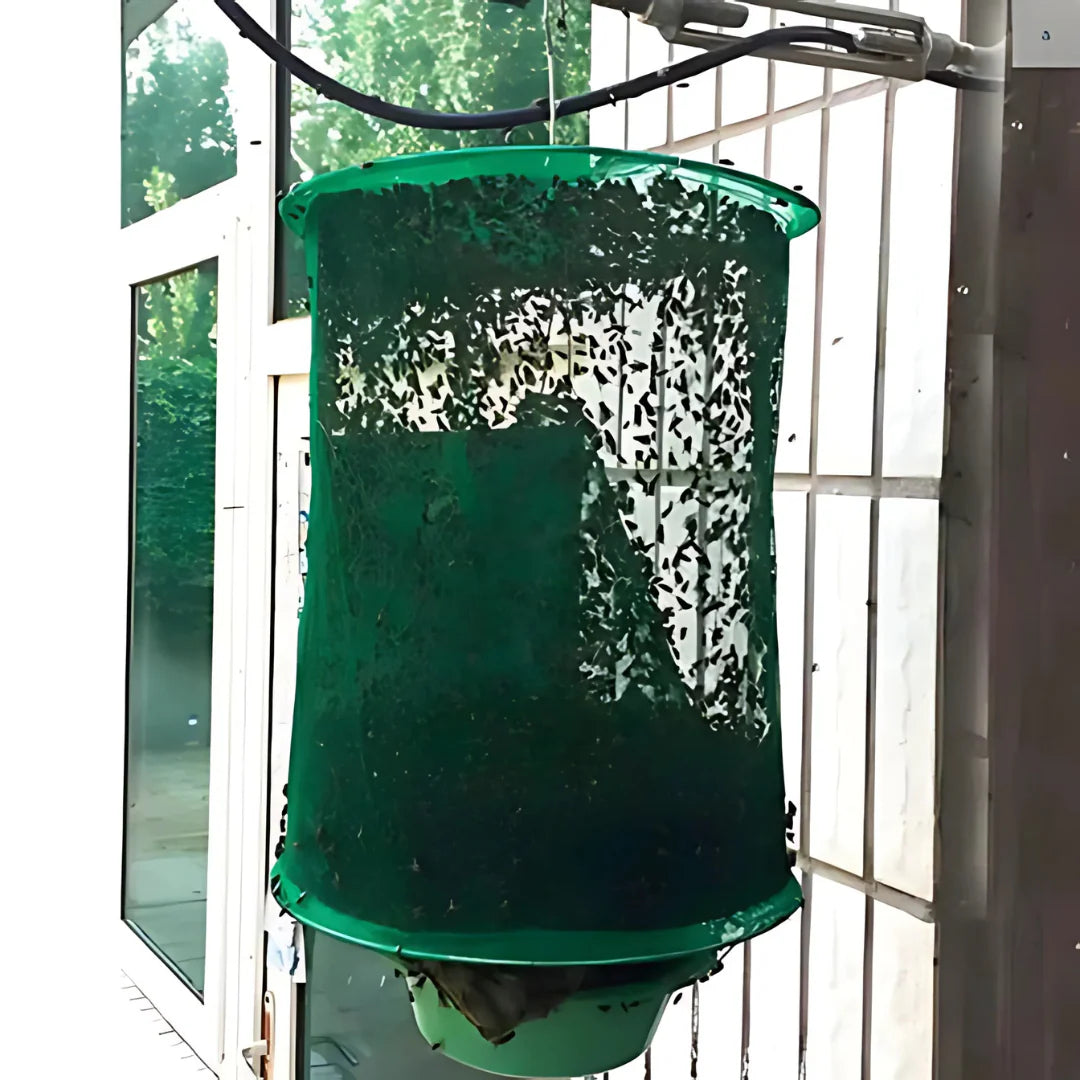 Accroche des nuées de mouches avec un simple appât maison (fruits très mûrs, restes odorants…). Le entonnoir guide les insectes à l’intérieur et les retient efficacement, sans spray ni tapette. Chaque piège peut piéger jusqu’à 20 000 mouches, idéal pour terrasse, jardin, poulailler ou zone de compost. Résultat : un environnement propre, sans effort.